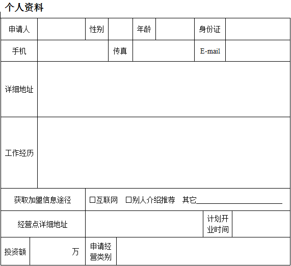 附件一:加盟申請及店址商圈調(diào)查評估表---個人資料